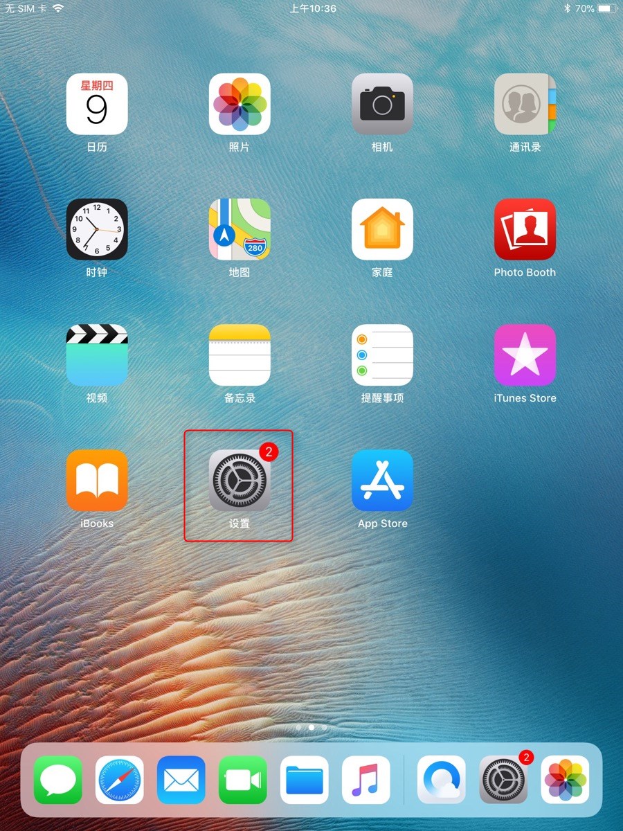 在iPad或iPhone主屏幕上找到"设置"应用图标(灰色齿轮形状)并点击打开。