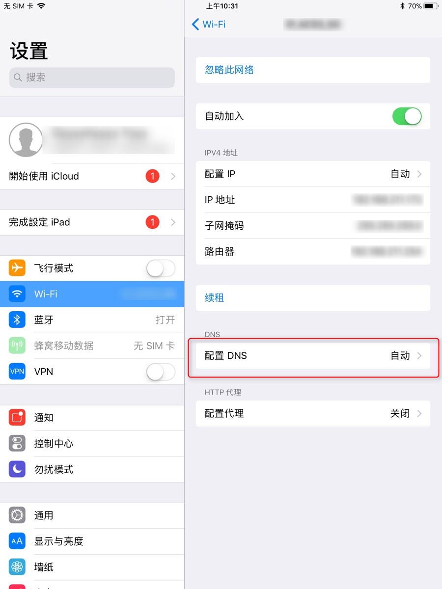 在网络详情页面向下滑动,找到"DNS"配置部分。