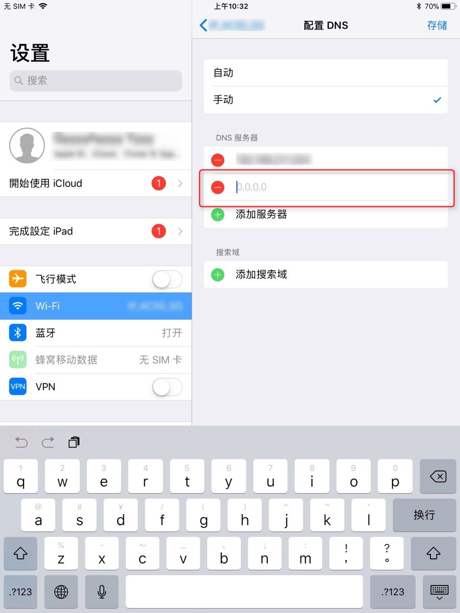 删除现有的DNS服务器地址,添加新的DNS地址: