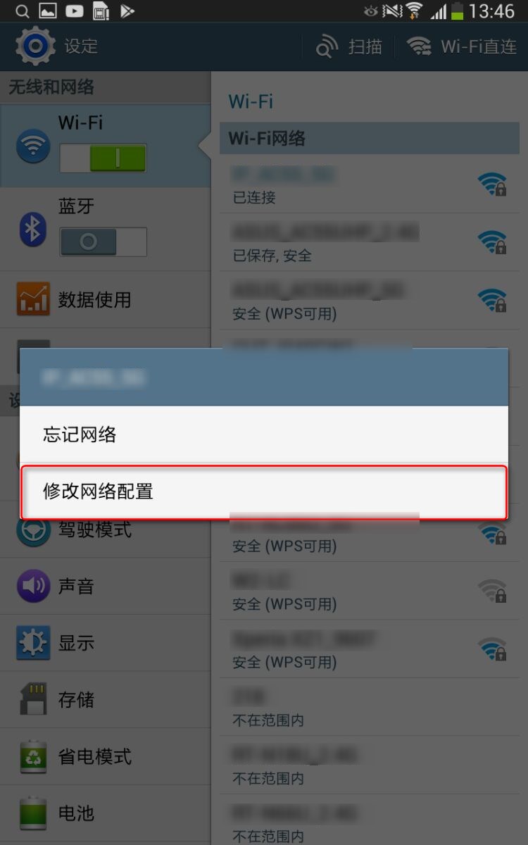 在弹出的菜单中选择"修改网络"或"网络设置"选项。