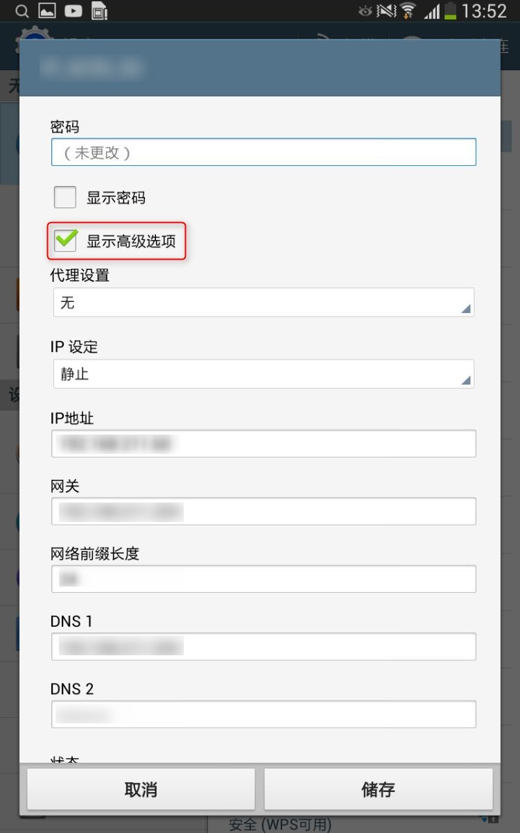 在修改网络界面中,找到并点击"显示高级选项"以查看更多网络设置。